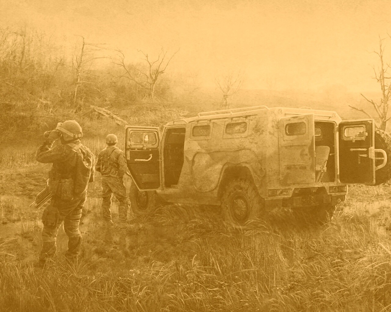 «Солдаты из сталкера на болоте»
