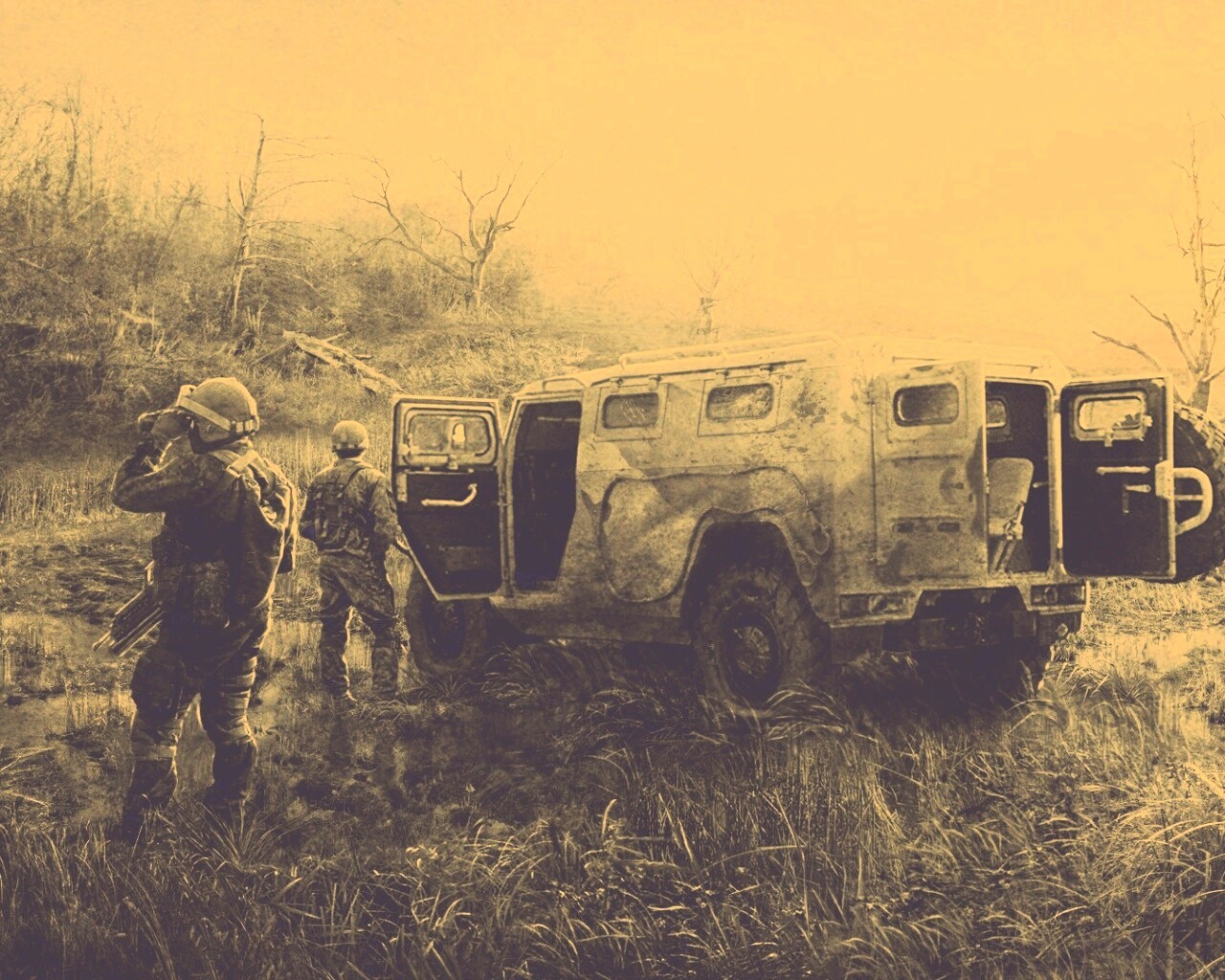 «Солдаты из сталкера на болоте»