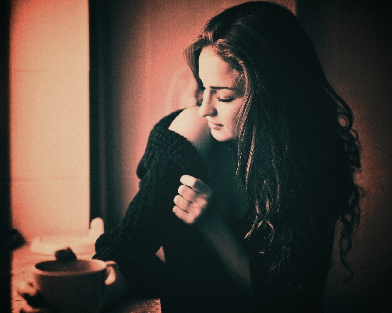 «Обнаженное плечо и чашка кофе»
