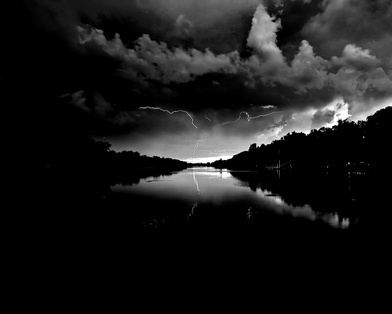 «Молнии на фоне заката, стандартные обои mac»