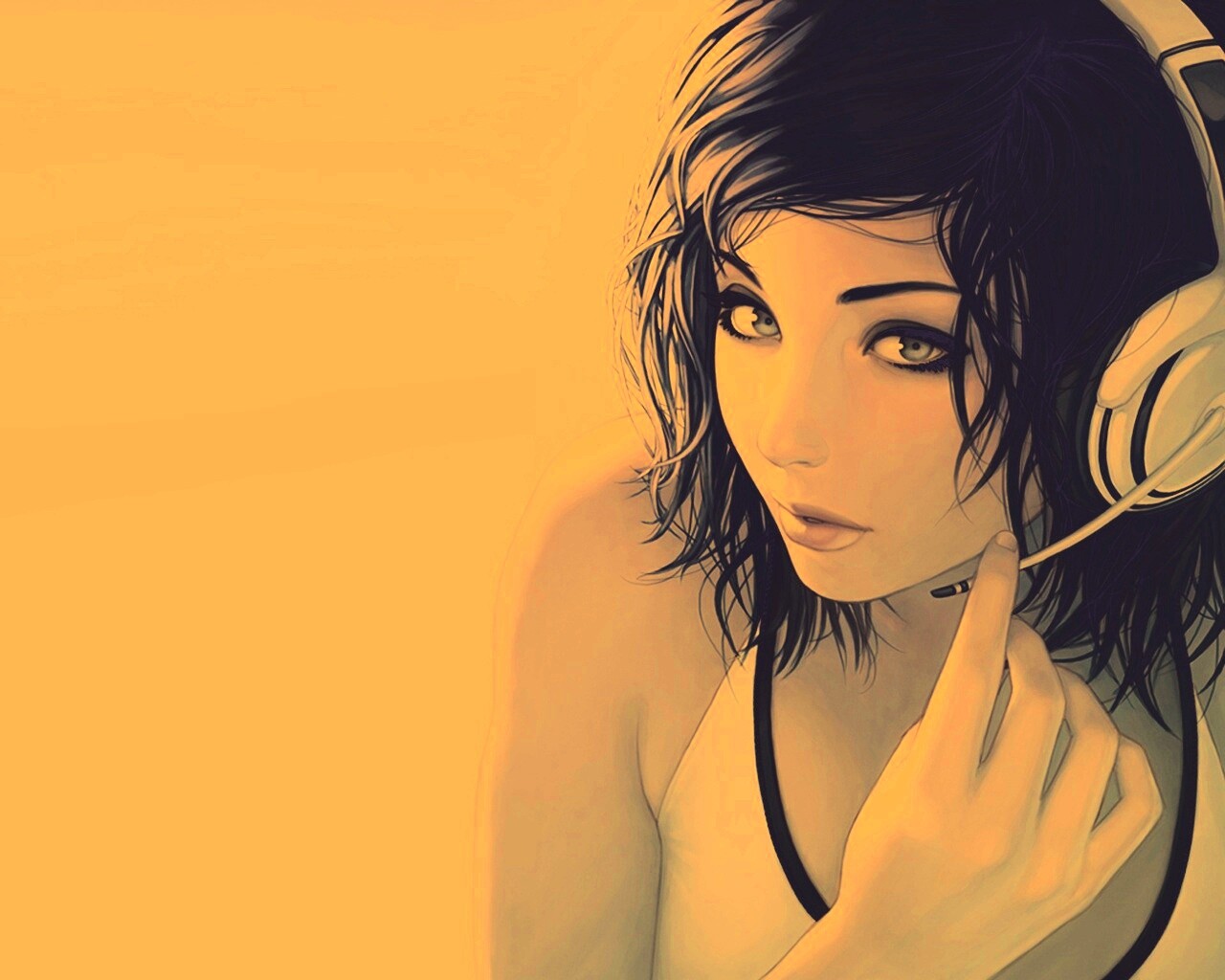 «Сексуальная девушка в наушниках с микрофоном»