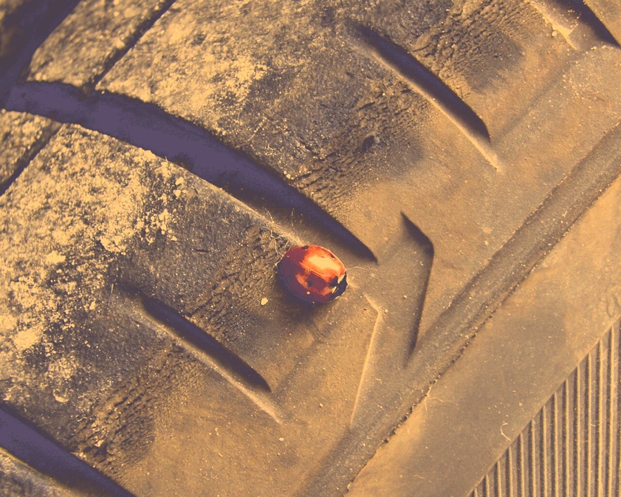 «Божья коровка на автомобильной покрышке»