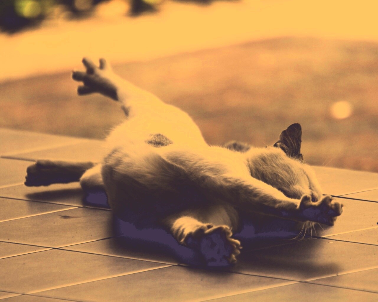 Обои для рабочего стола «Потягивающаяся кошка» 1280х1024 с фильтром nashville (оригинал 5184х3456)