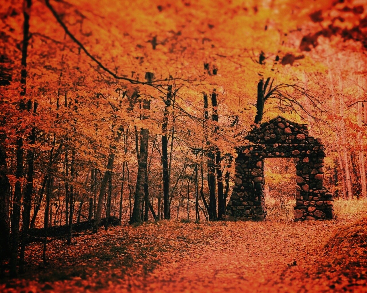 «Каменная арка в осеннем лесу»