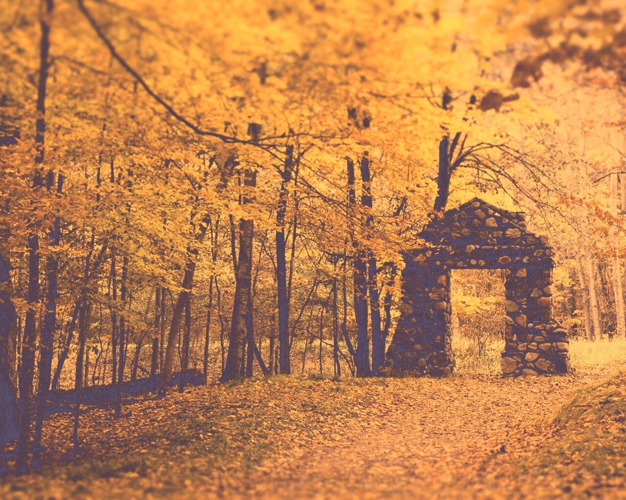 «Каменная арка в осеннем лесу»