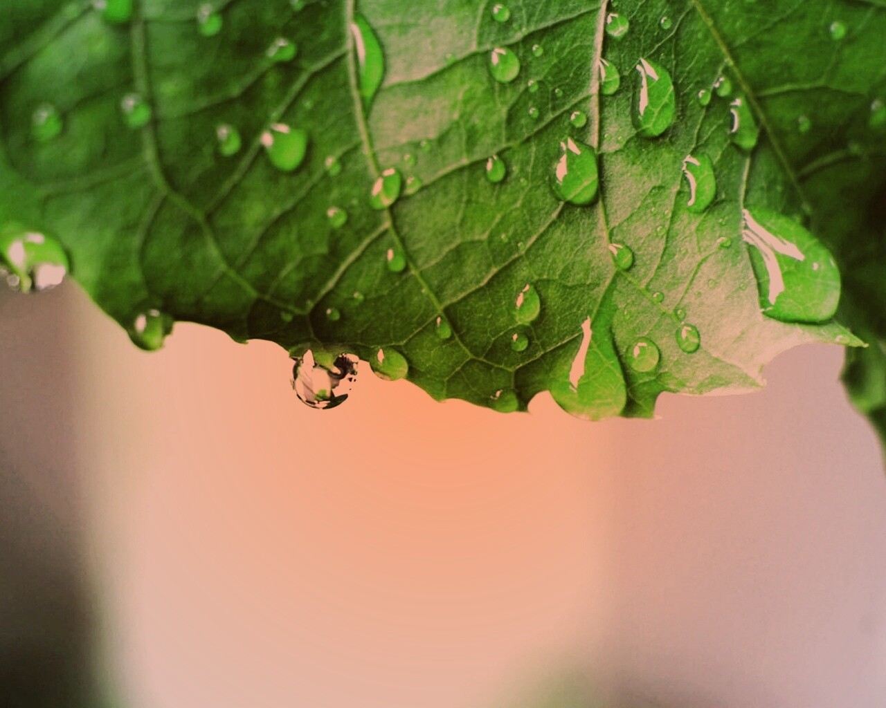 «Роса на листе в макро»
