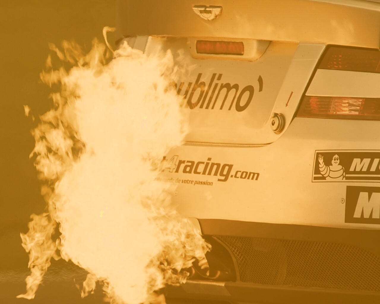 «Огонь из выхлопной трубы гоночного Aston Martin»