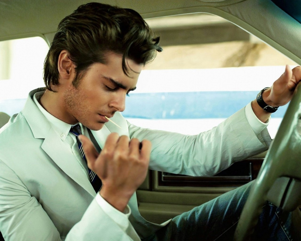 «Мужчина прикуривает в машине»