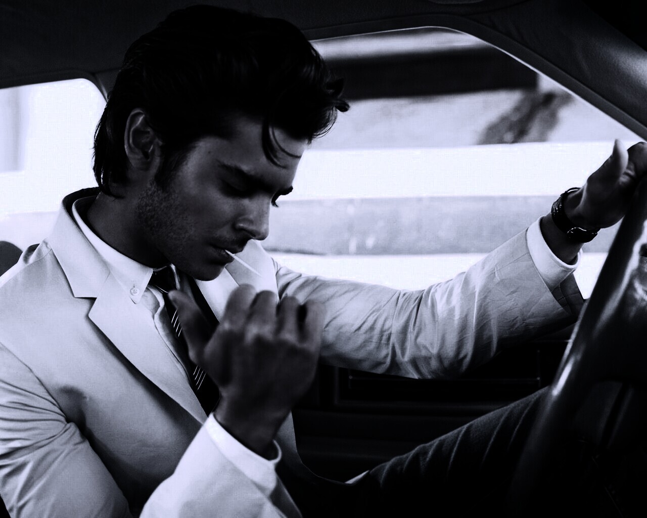 «Мужчина прикуривает в машине»