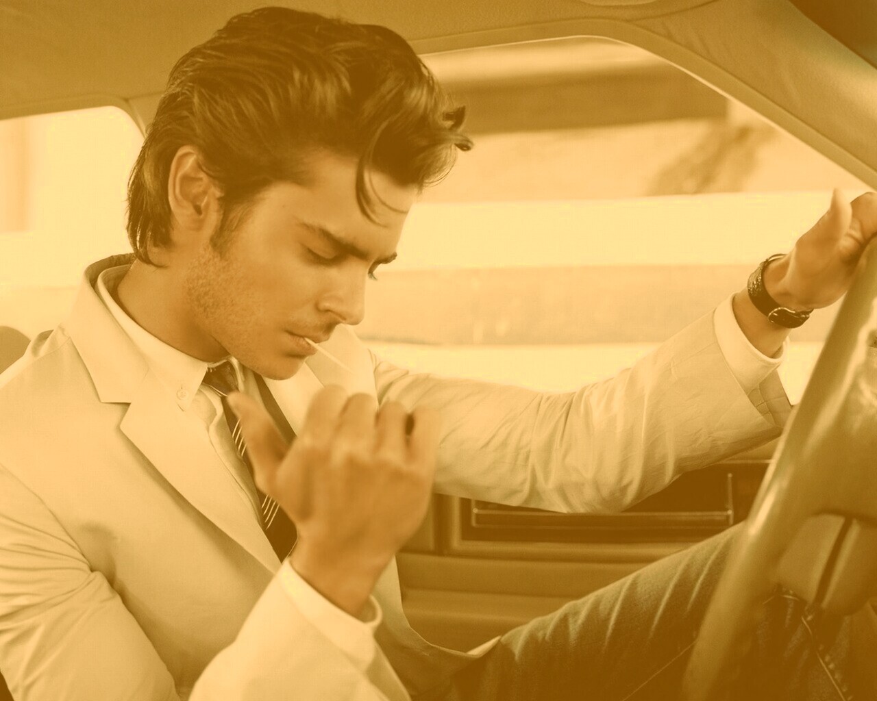 «Мужчина прикуривает в машине»