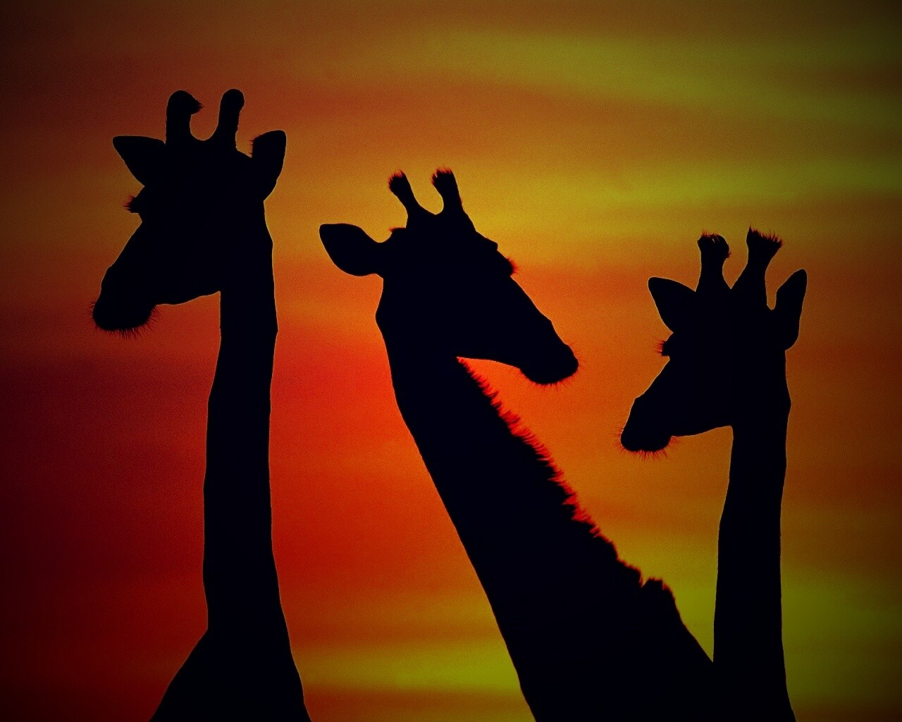 «Три силуэта жирафов на фоне неба»