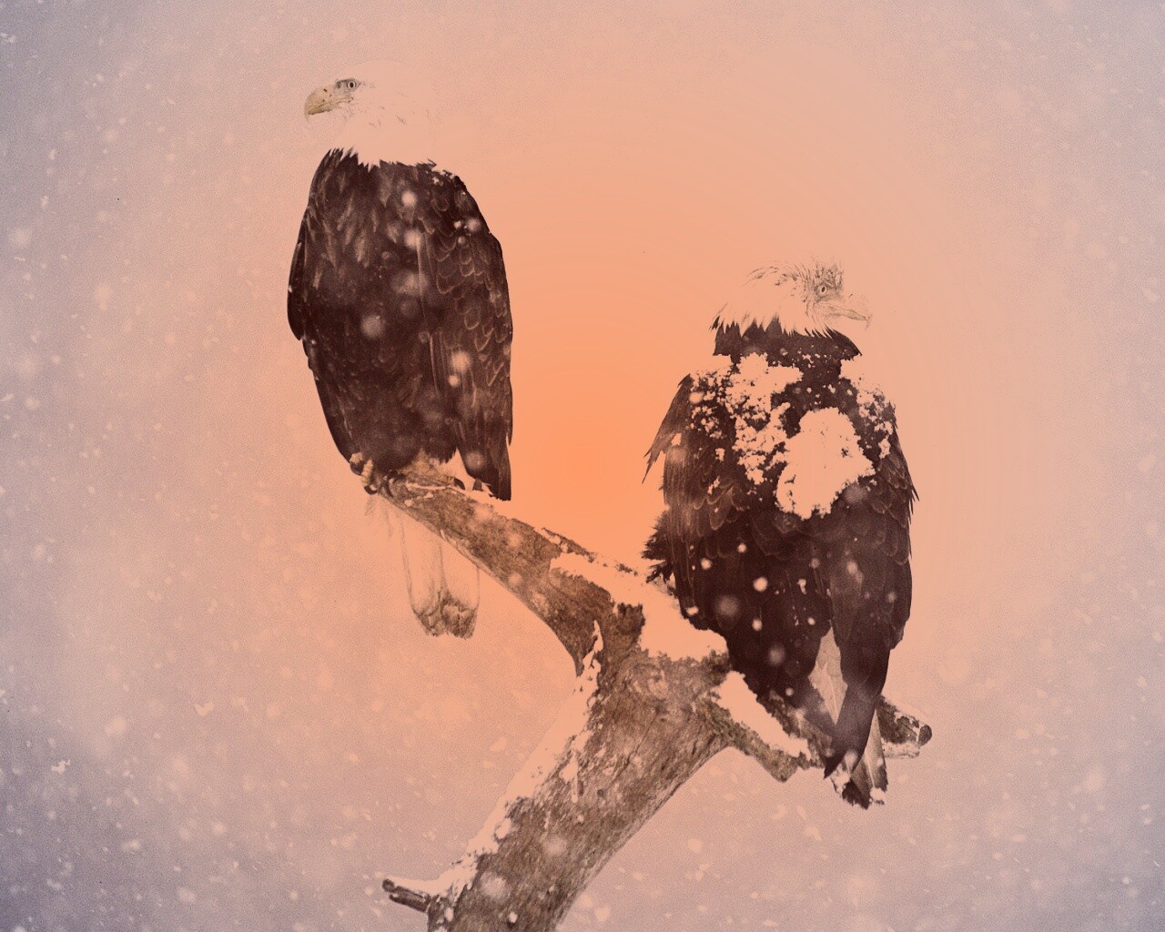 «Орлы на ветке в снегопад»