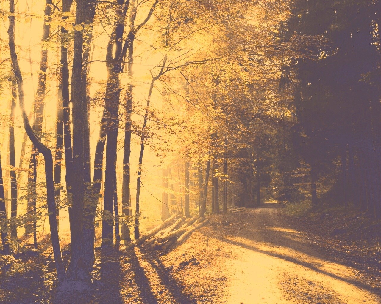 «Дорога вдоль просеки в осеннем лесу»