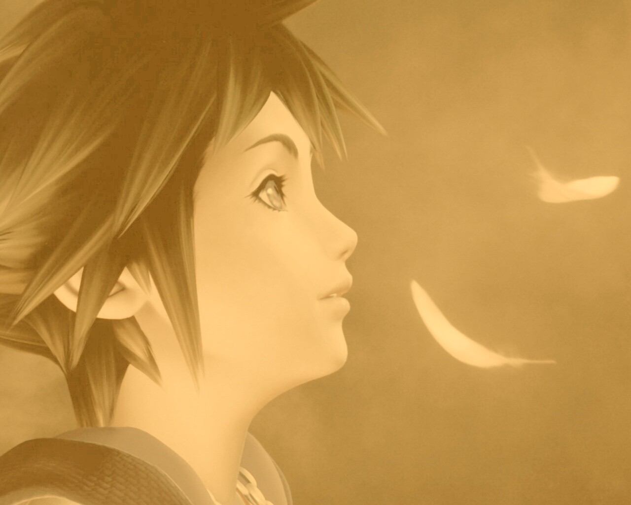 «Анимешный парень и белые перья»