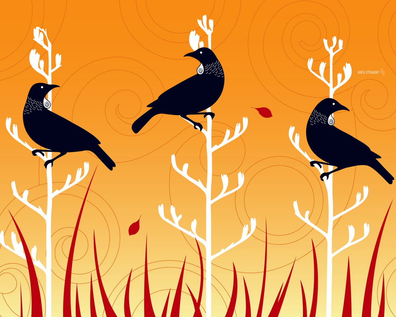 «Векторные стилизованные птицы на ветках дерева»