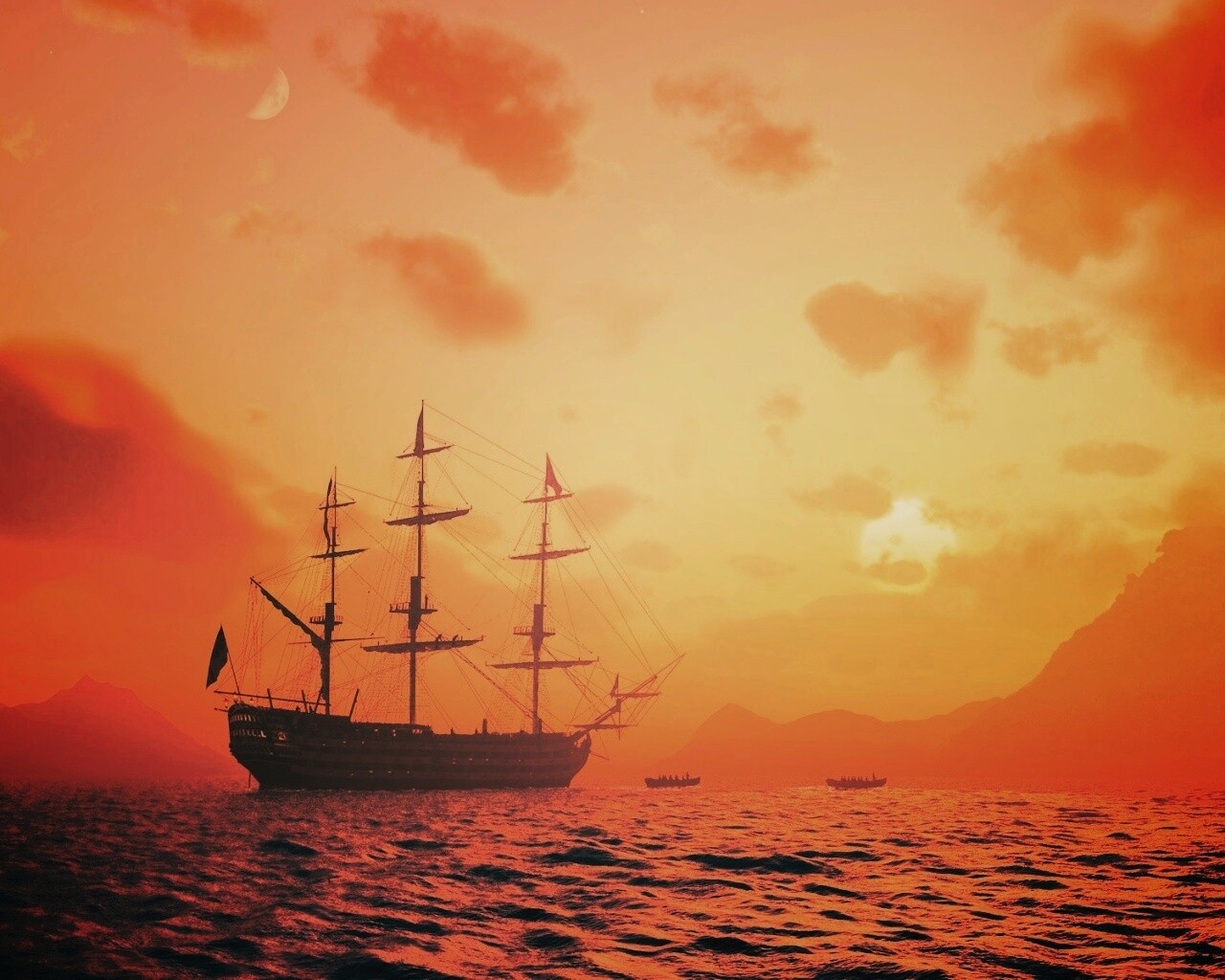 «Трехпалубный парусный корабль на закате»