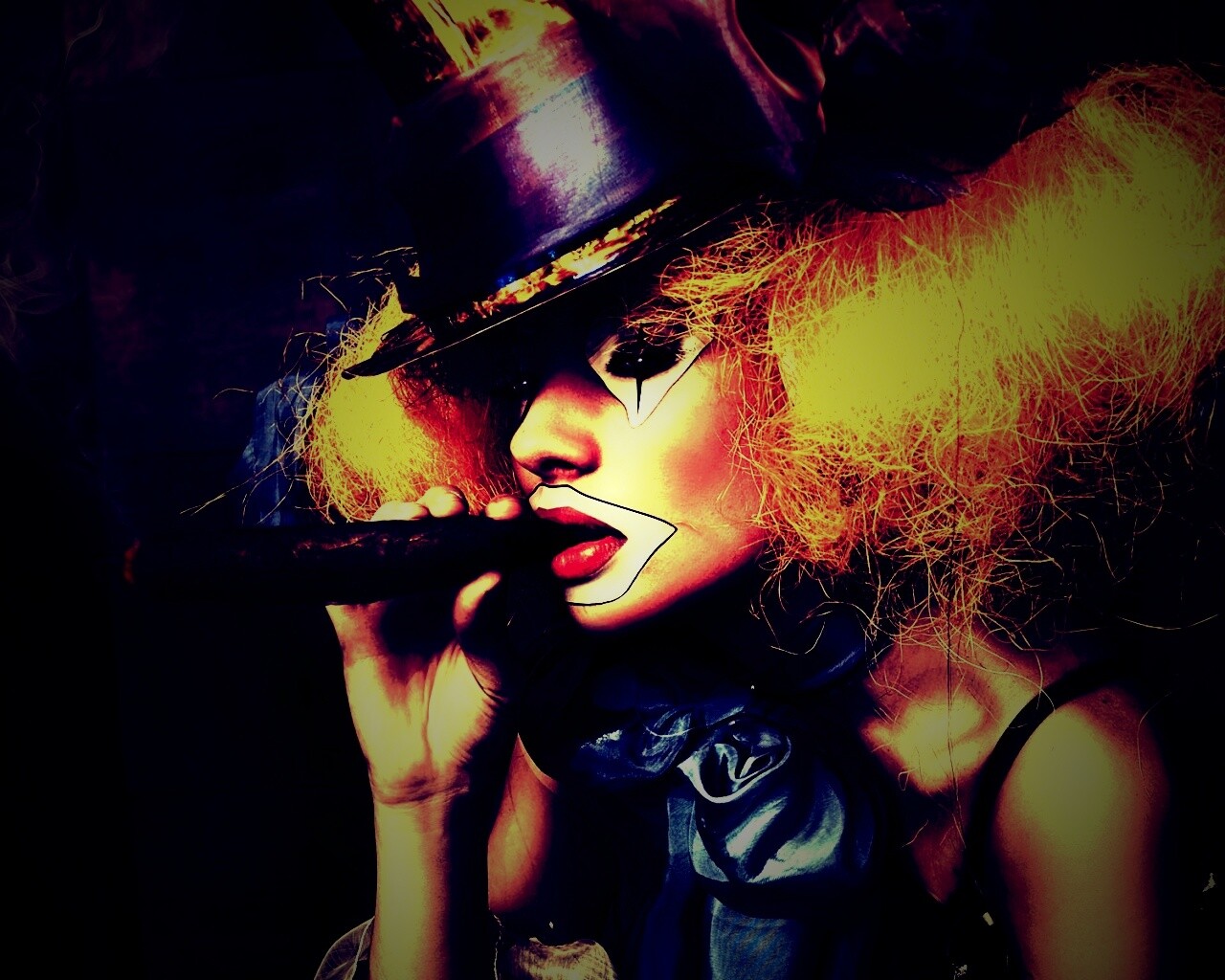«Девушка клоун курит сигару»