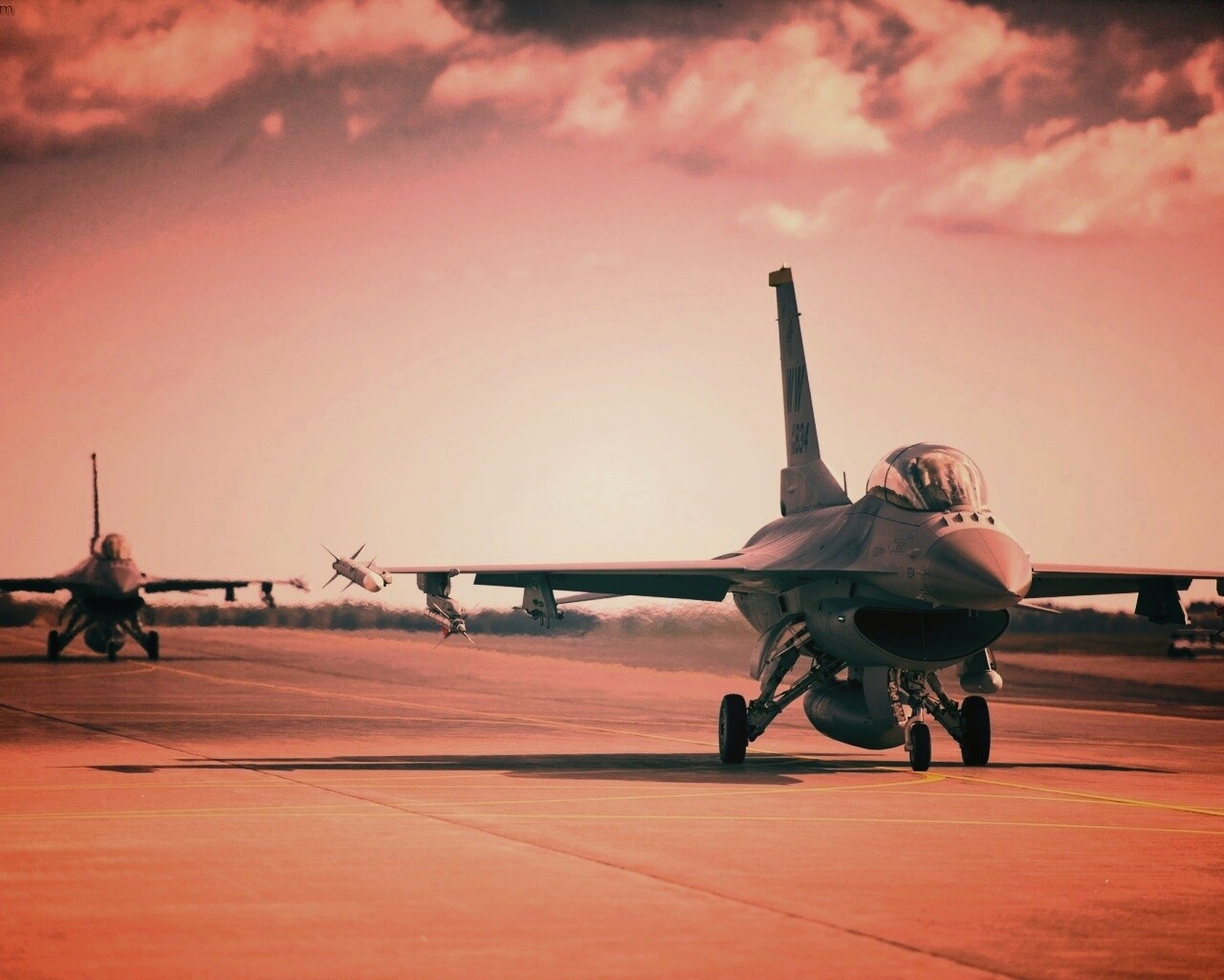 «Истребители f16 Falcon на взлетной полосе»
