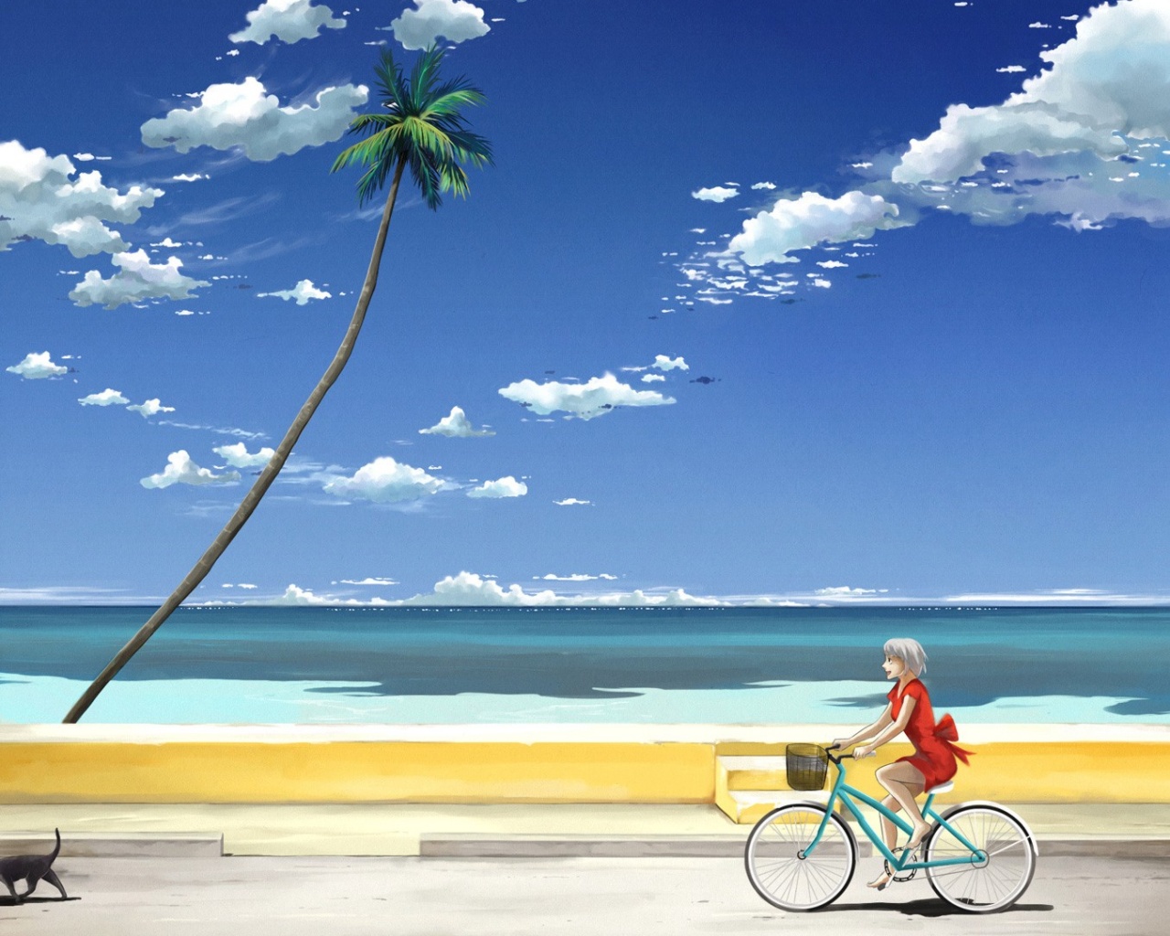 «Девушка едет на велосипеде вдоль берега»