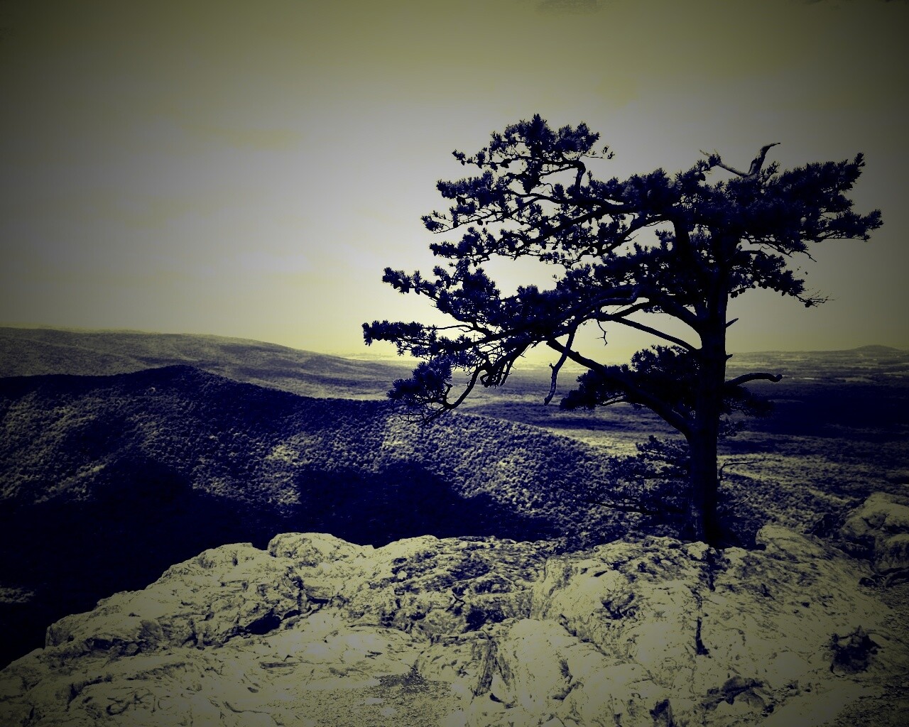 «Горное дерево в черно-белых тонах»
