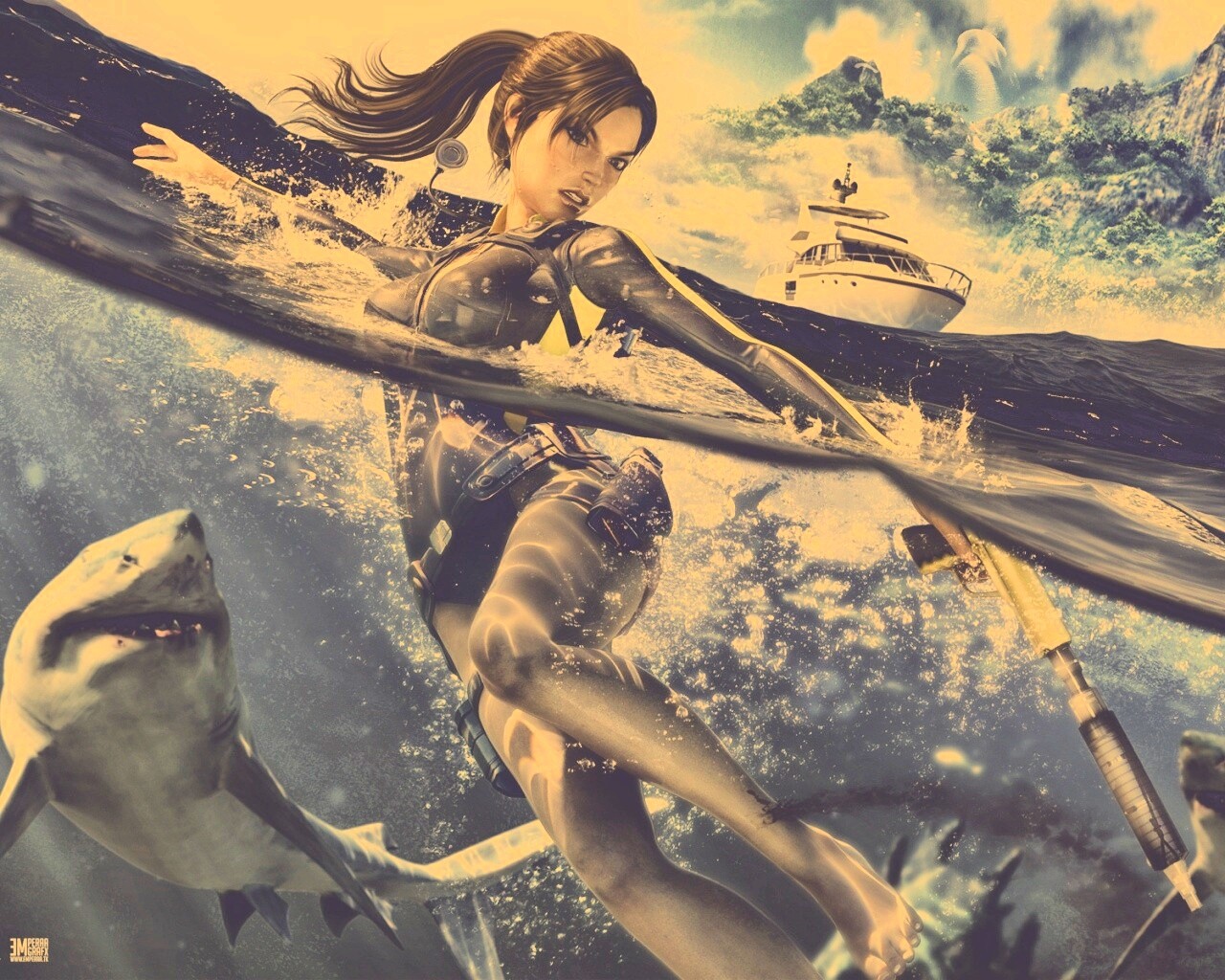 «Лара Крофт против акул»
