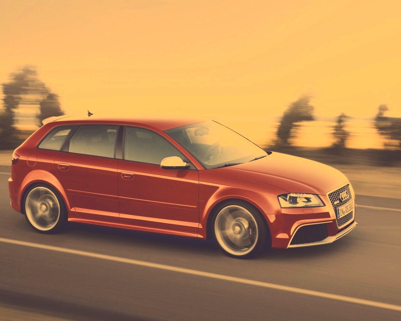 «Красная Audi модели RS3 на дороге»