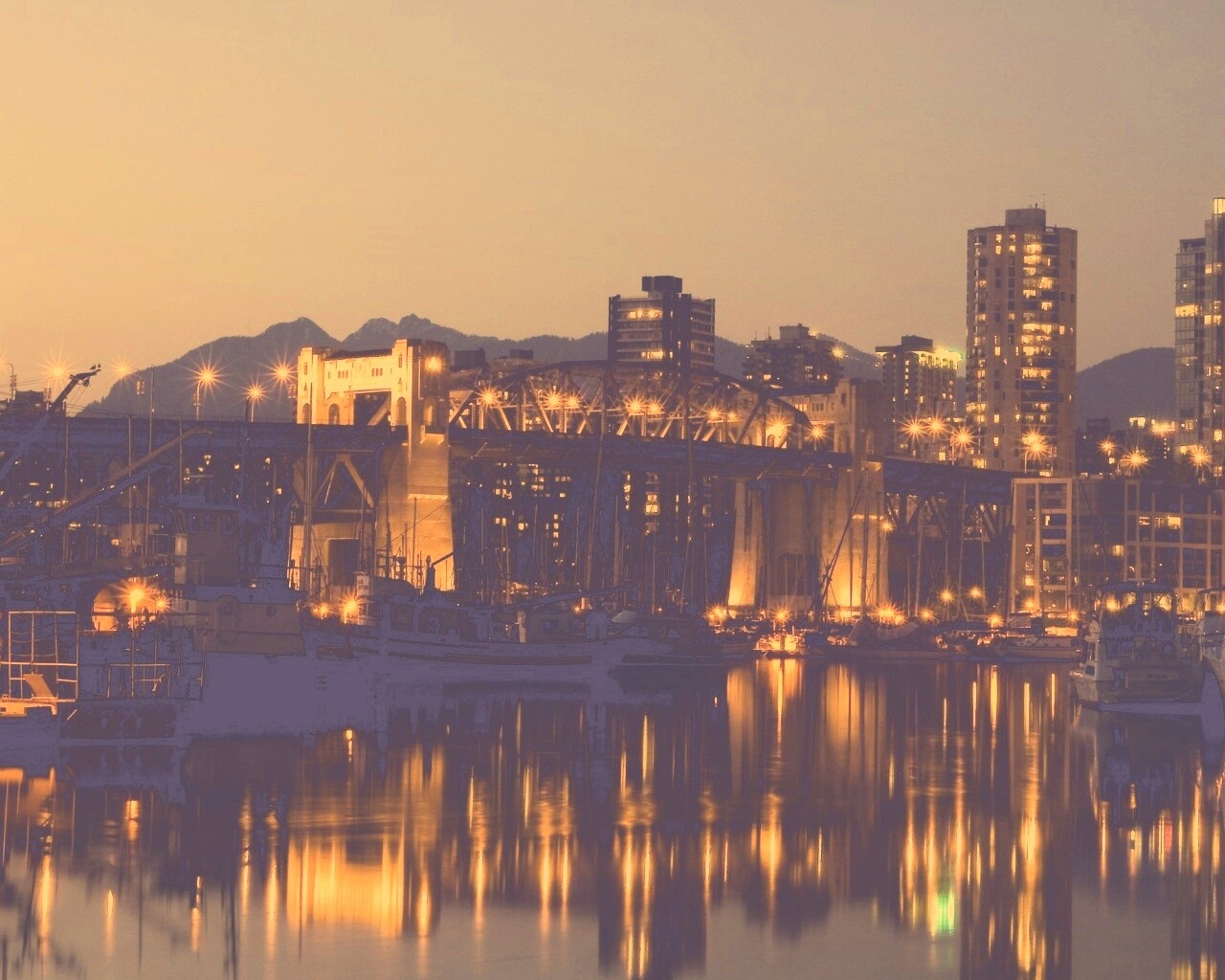 «Мост и катера на закате»