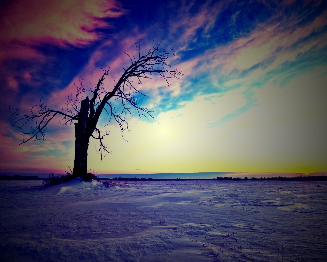 «Сломанное дерево в снежной тундре»
