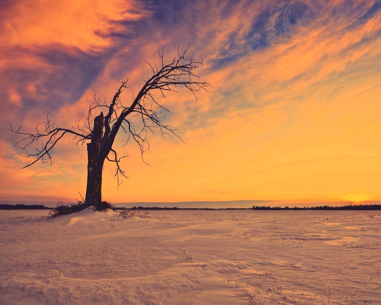 «Сломанное дерево в снежной тундре»