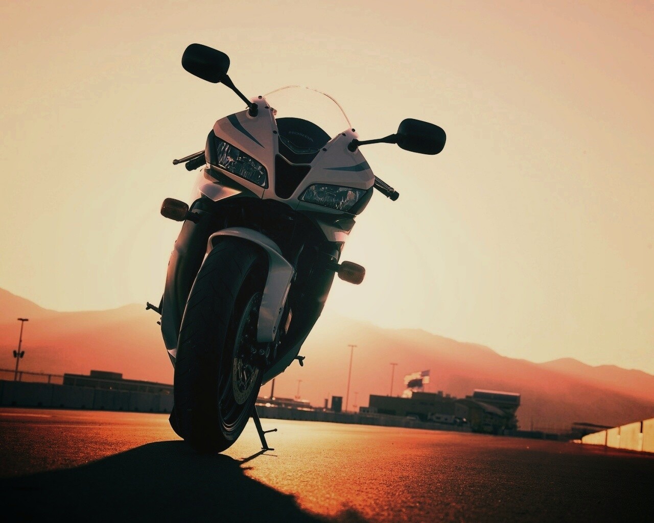 «Мотоцикл на фоне заходящего солнца»