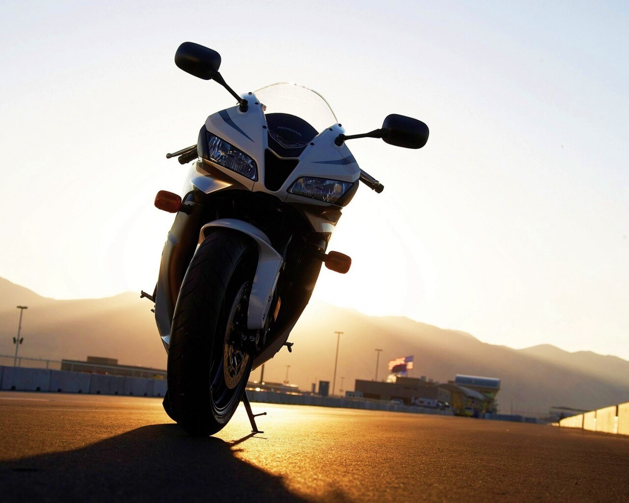 «Мотоцикл на фоне заходящего солнца»