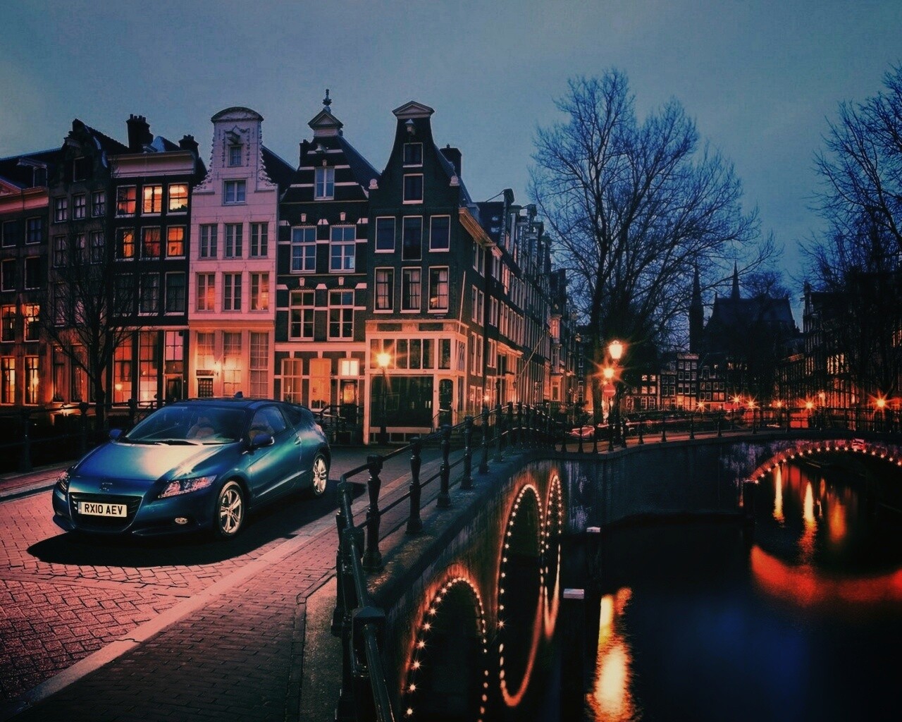 «Автомобиль на мосту в свете фонаря»