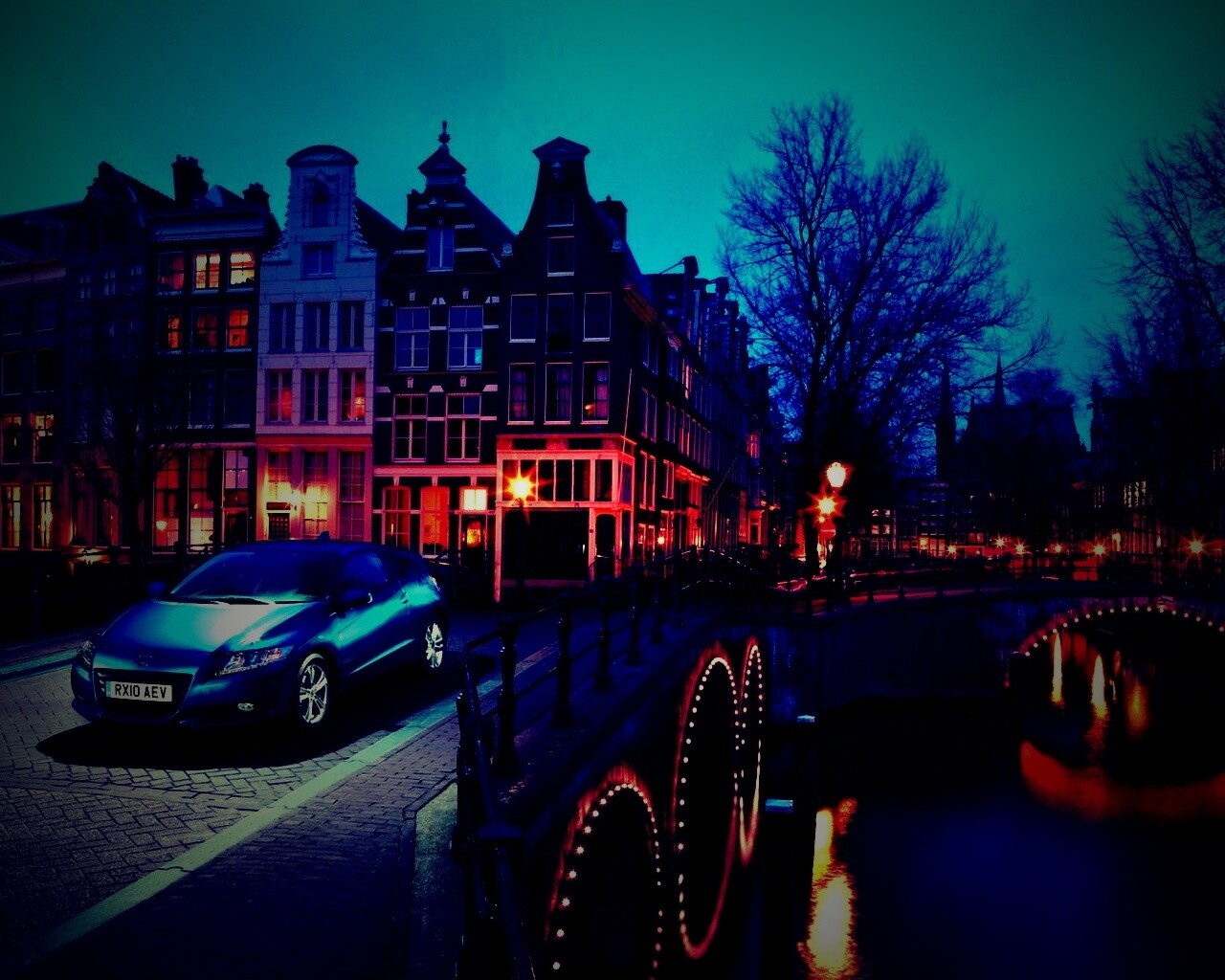 «Автомобиль на мосту в свете фонаря»