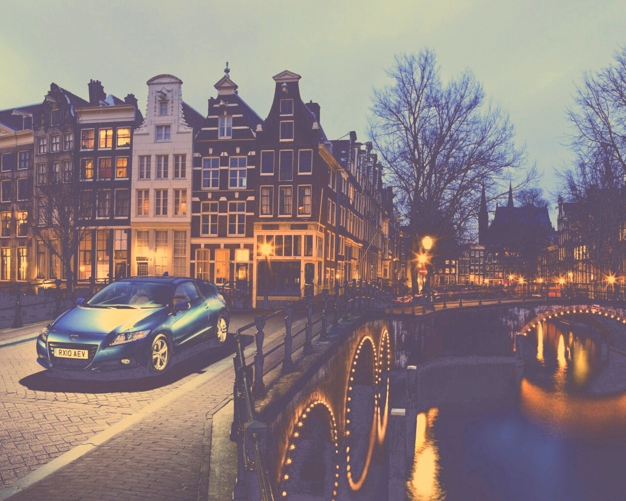 «Автомобиль на мосту в свете фонаря»