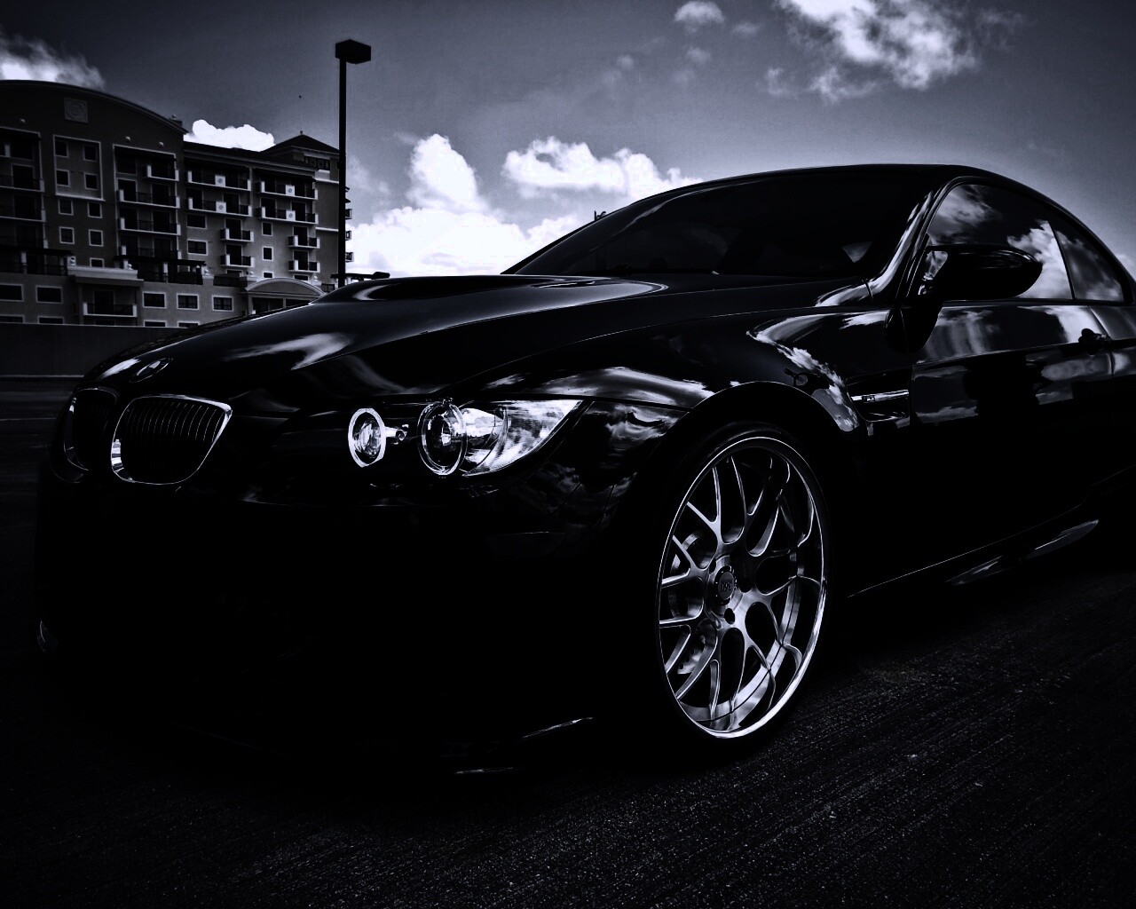 «Красивый черный BMW на парковке»