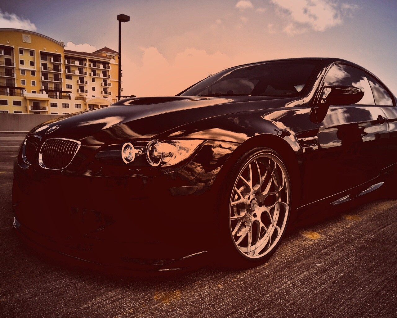 «Красивый черный BMW на парковке»