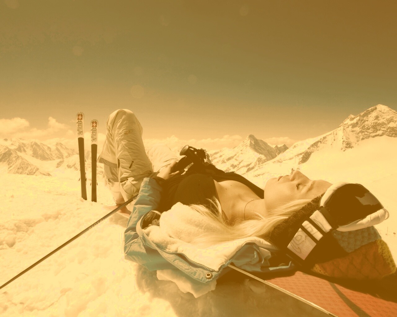 «Лыжница отдыхает в горах»