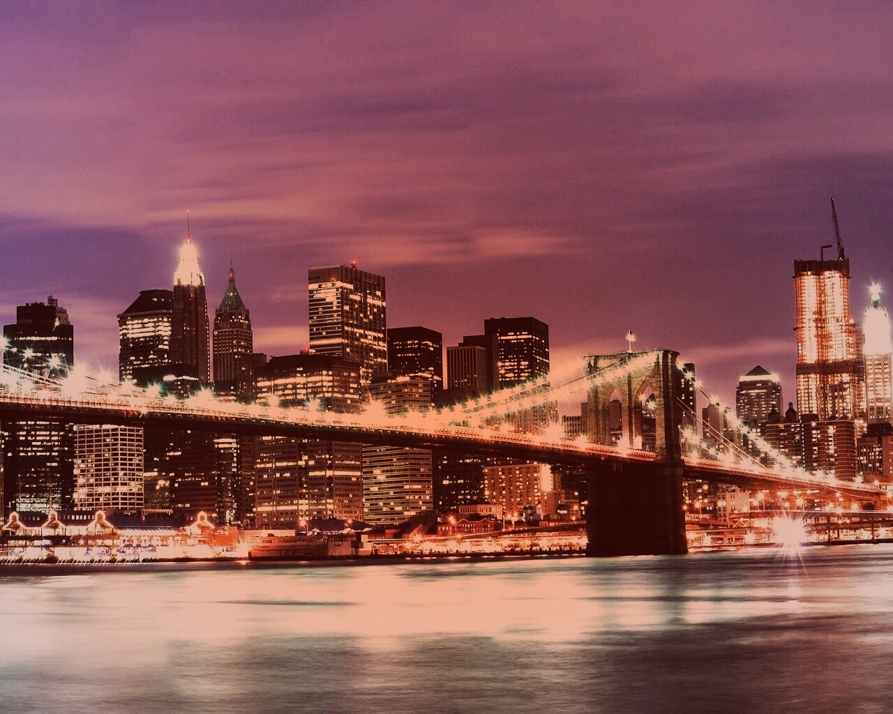 «Бруклинский мост на фоне ночного Нью-Йорка»