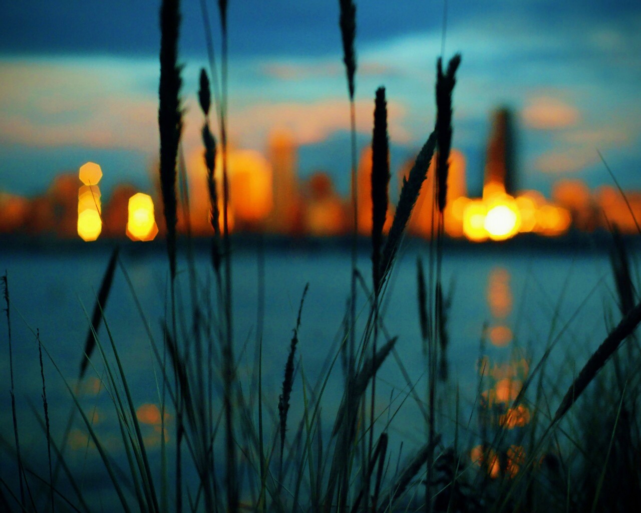 «Камыш на фоне вечерних огней»