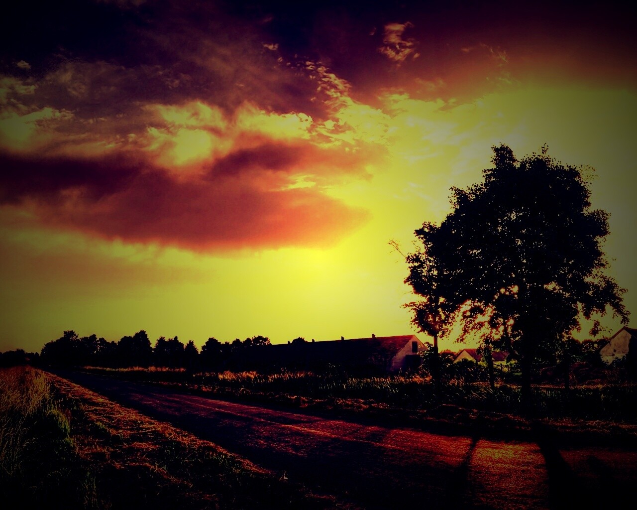 «Закат на фоне дерева в HDR»