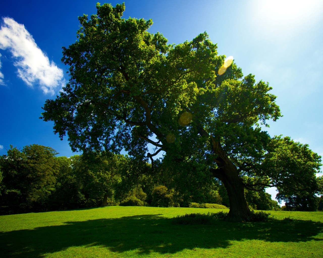 «Большое зеленое дерево на лужайке»
