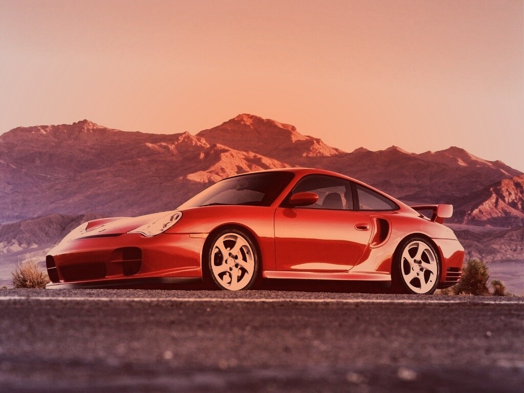 «Красный Порше на фоне гор»
