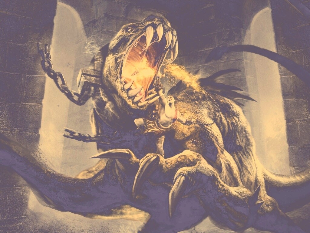 «Кратос против динозавра»