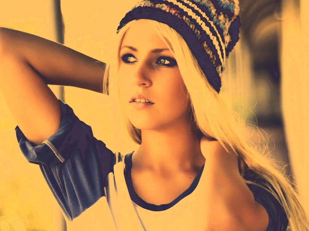 «Блондинка в вязанной шапке»