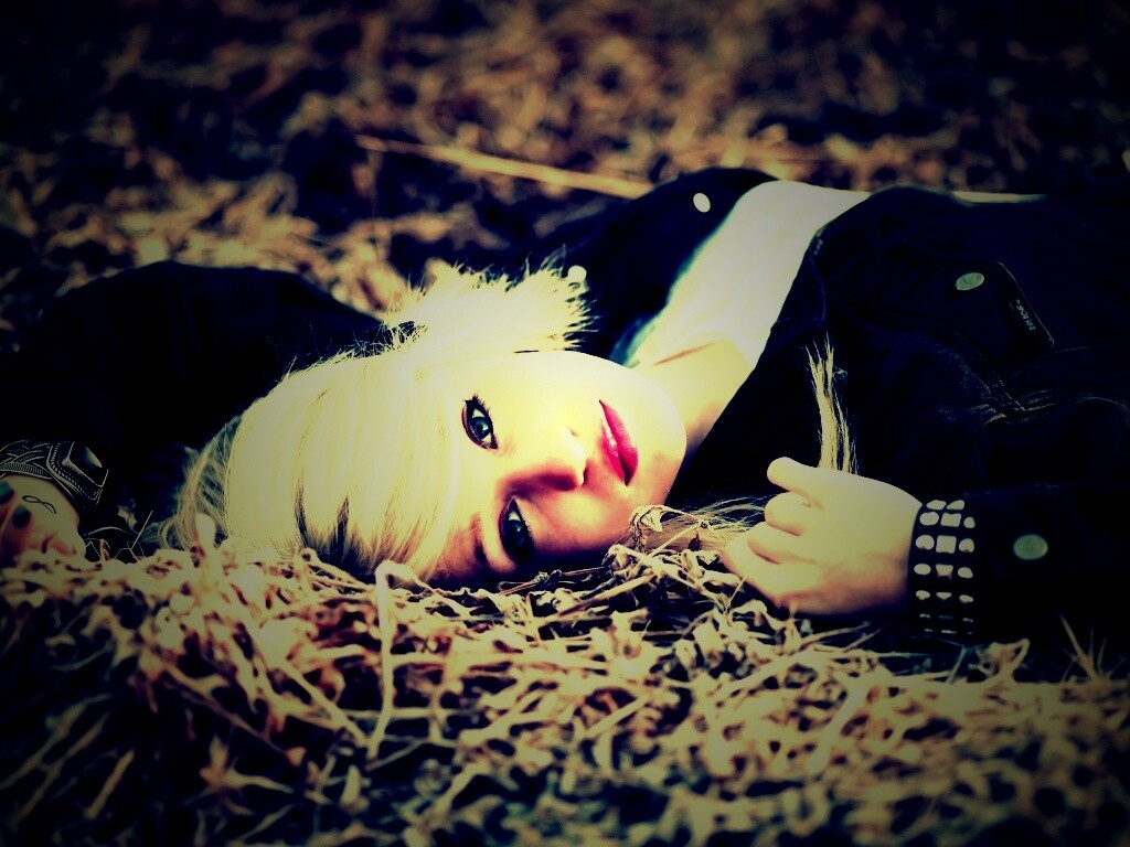 «Блондинка лежащая на траве»