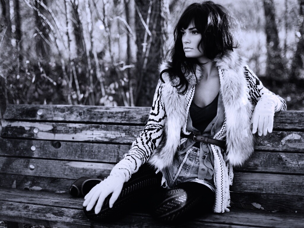 «Красивая девушка сидит на скамейке»