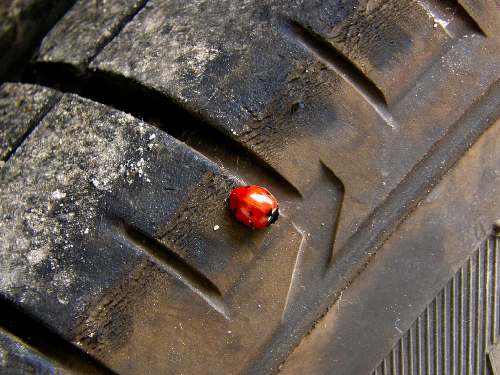 «Божья коровка на автомобильной покрышке»