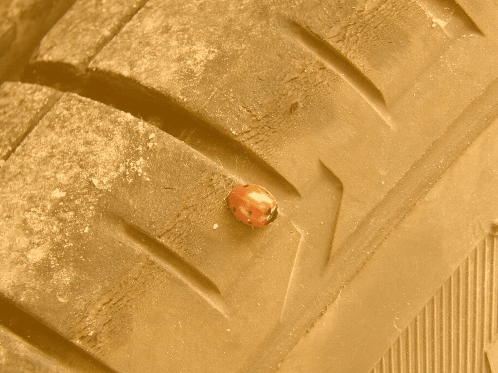 «Божья коровка на автомобильной покрышке»