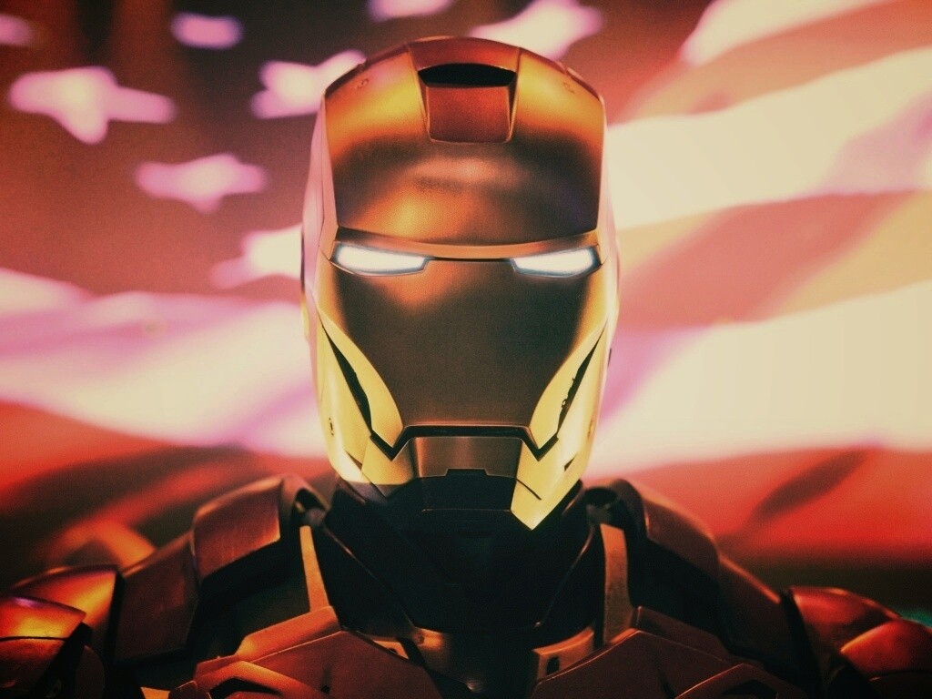 «Железный человек на фоне американского флага»