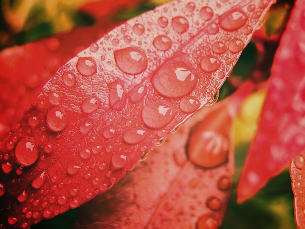 «Капли росы на красных листьях»